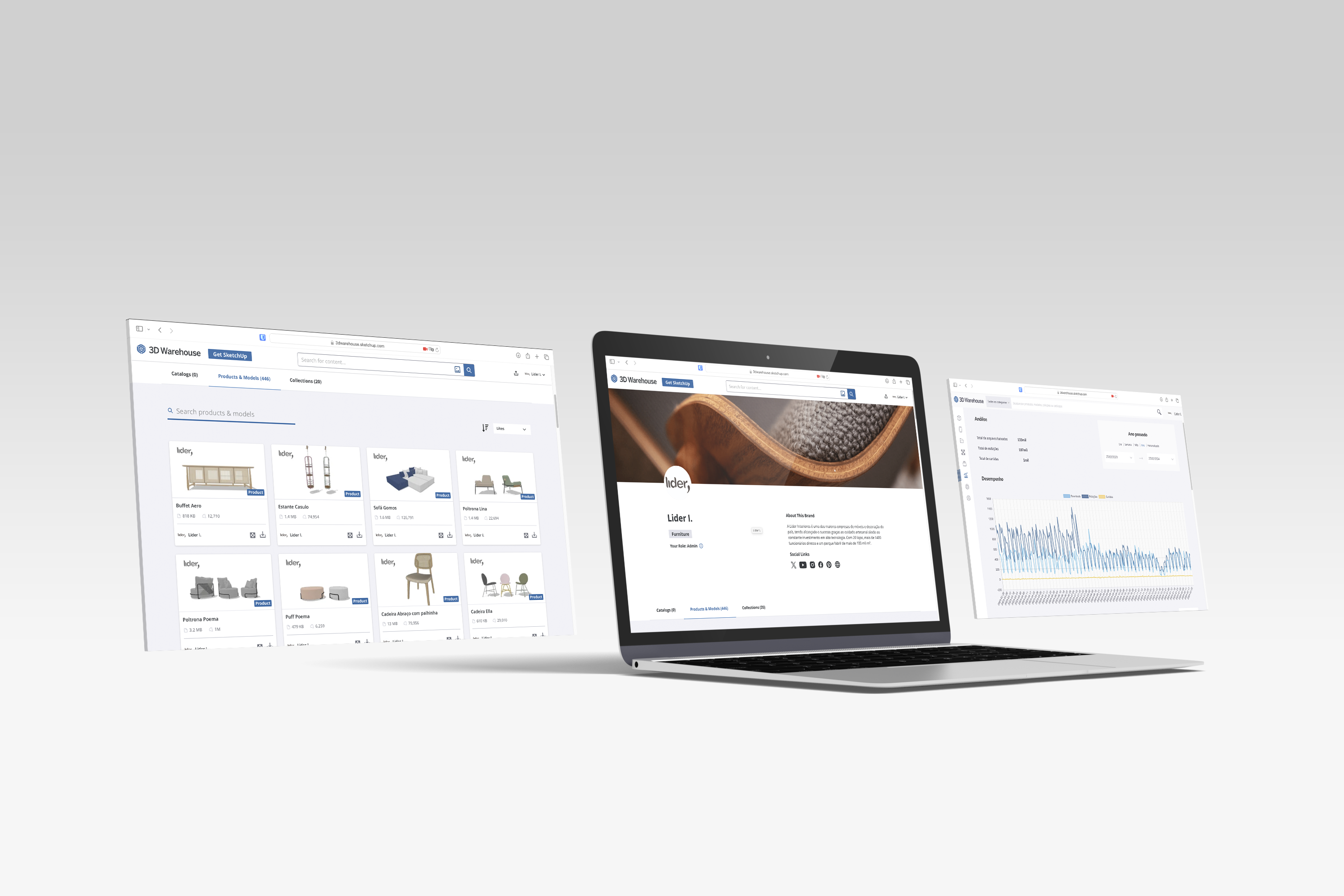 O tempo foi exato. À medida que ficávamos em quarentena foi preciso desenvolver com agilidade a área digital e 3Ds de alta qualidade para suprir a demanda e esse novo modelo de trabalho remoto. Todos os produtos da marca foram desenvolvidos, com precisão de tamanhos, acabamentos, até os veios das madeiras estão precisamente mapeados. O resultado não poderia ter sido melhor.